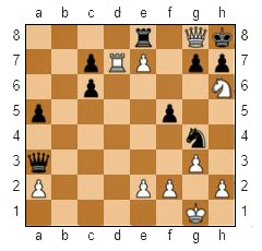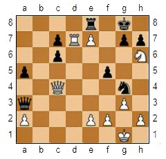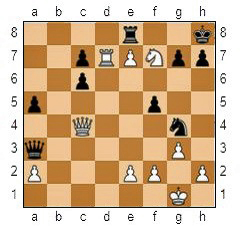 Vit dam flyttar på g8 som är garderad och schackar. Svart torn måste slå damen.